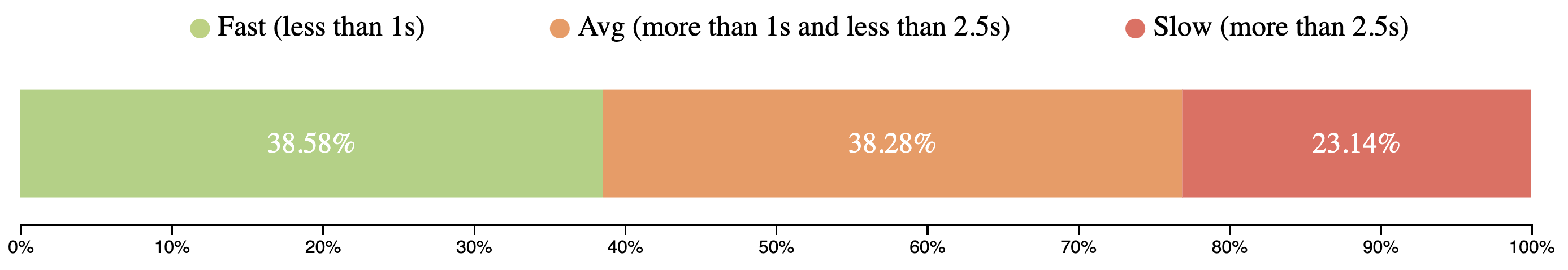 FCP 在全球 23% 的页面浏览量中发生在 2.5 秒之后。