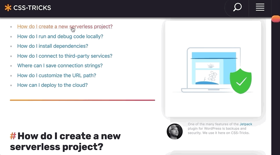 近 10 年前,我称之为 “撞击浏览器窗口”,并介绍了一些可能的解决方案。Nicolas Gallager 记录了五种不同的技术。我什至在 CSS-Tricks 的 v17 版本中使用了固定位置的页眉,而且我不太喜欢其中任何一种技术。我有点放弃了,并在所有 <h3>