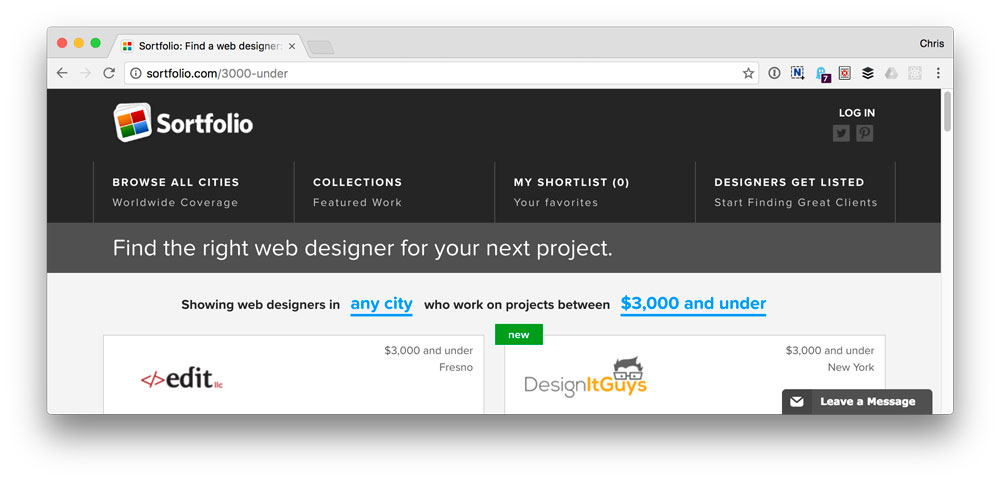 市场上存在这些网站来填补价格层级是有道理的。Fiverr 显然以 5 美元的价格占据了低端市场。99designs 将其“海报”的青铜套餐列为 199 美元。然后显然还有像 Sortfolio(专门用于网页设计)这样的更高端的市场,其最低价格层级为“3000 美元以下”。
