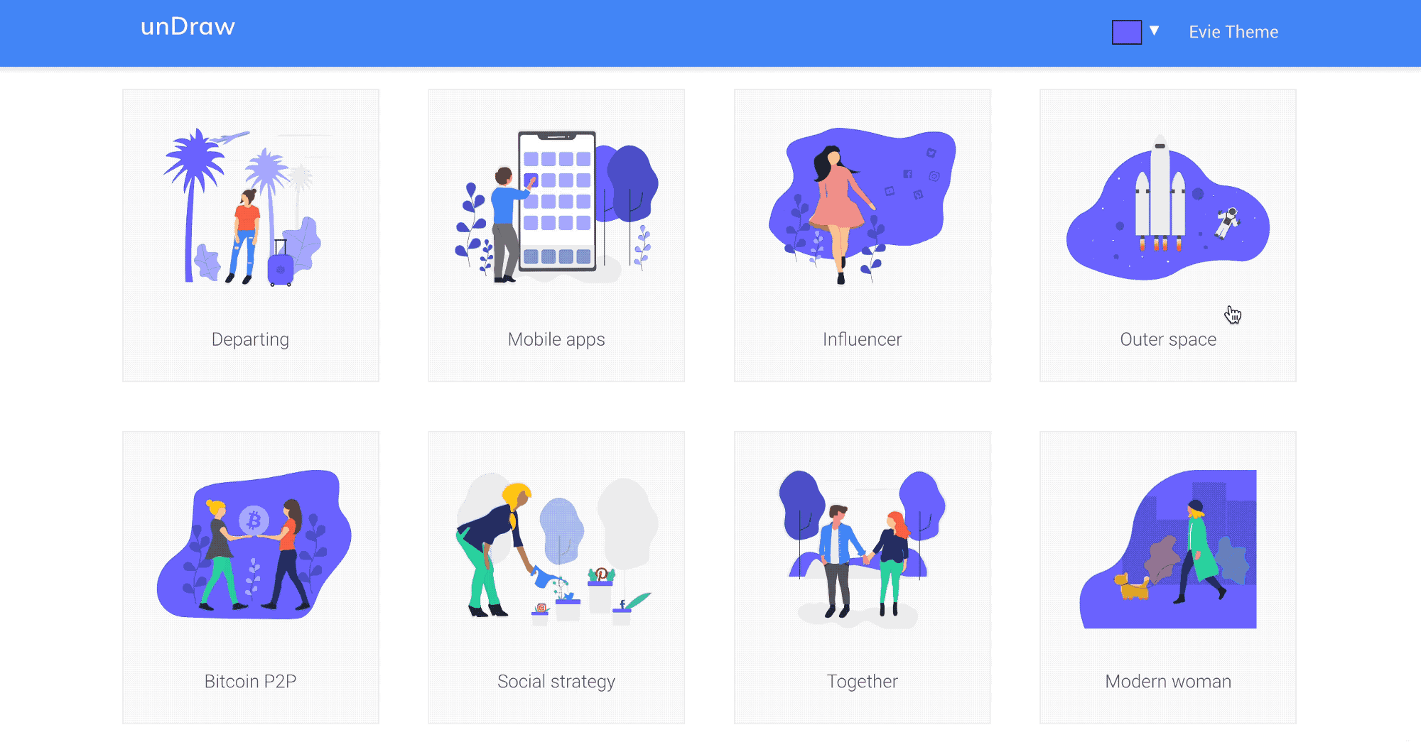 当您访问 unDraw 时,您目前可以从网站上直接自定义每个 SVG 插图的主要颜色之一。