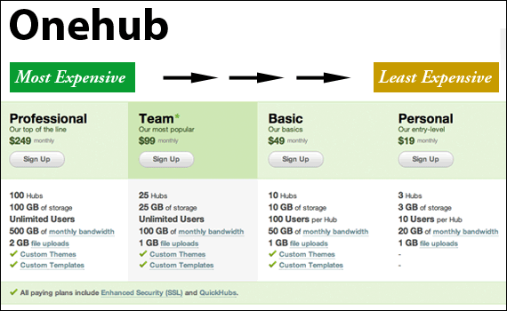 我认为如果最左边一列是计划而不是名称/描述列,那么使用更贵(左)——更便宜(右)看起来会更好。就像 wufoo、onehub。否则保持更贵在右边。就像你的旧方法。我也没有完全确定,但如果你发现新版本有任何效果,请告诉我们。